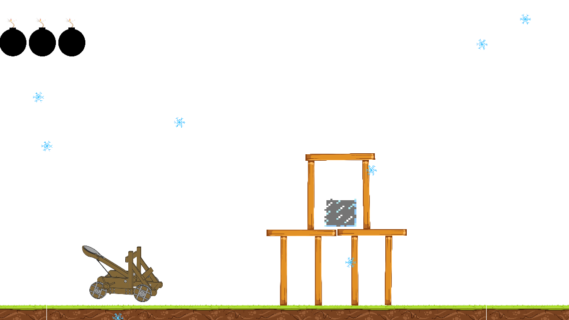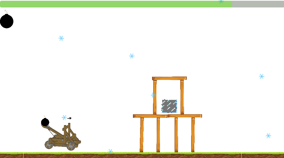 You have to hit the glass with a bomb. If you don't succeed on your first try, don't worry—you have 3 lives. To launch the bomb, press and hold Space. A progress bar will appear at the top of the screen, moving from side to side.